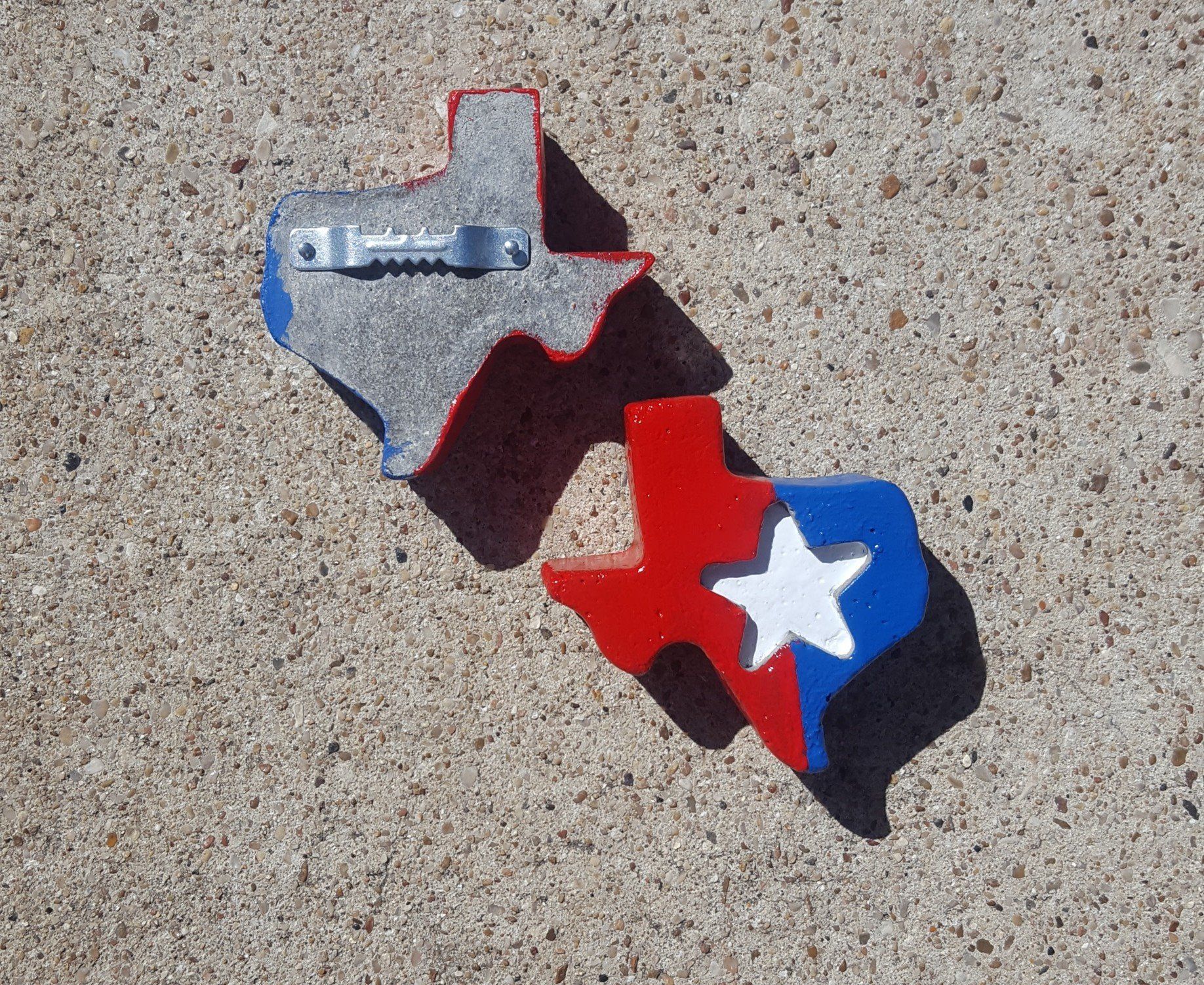 Button3x3 grey cement hand painted Texas Flag wall decor with wall hanger mounted in the cement. Have some with out the hanger. $4 each. 5 available and can reproduce.