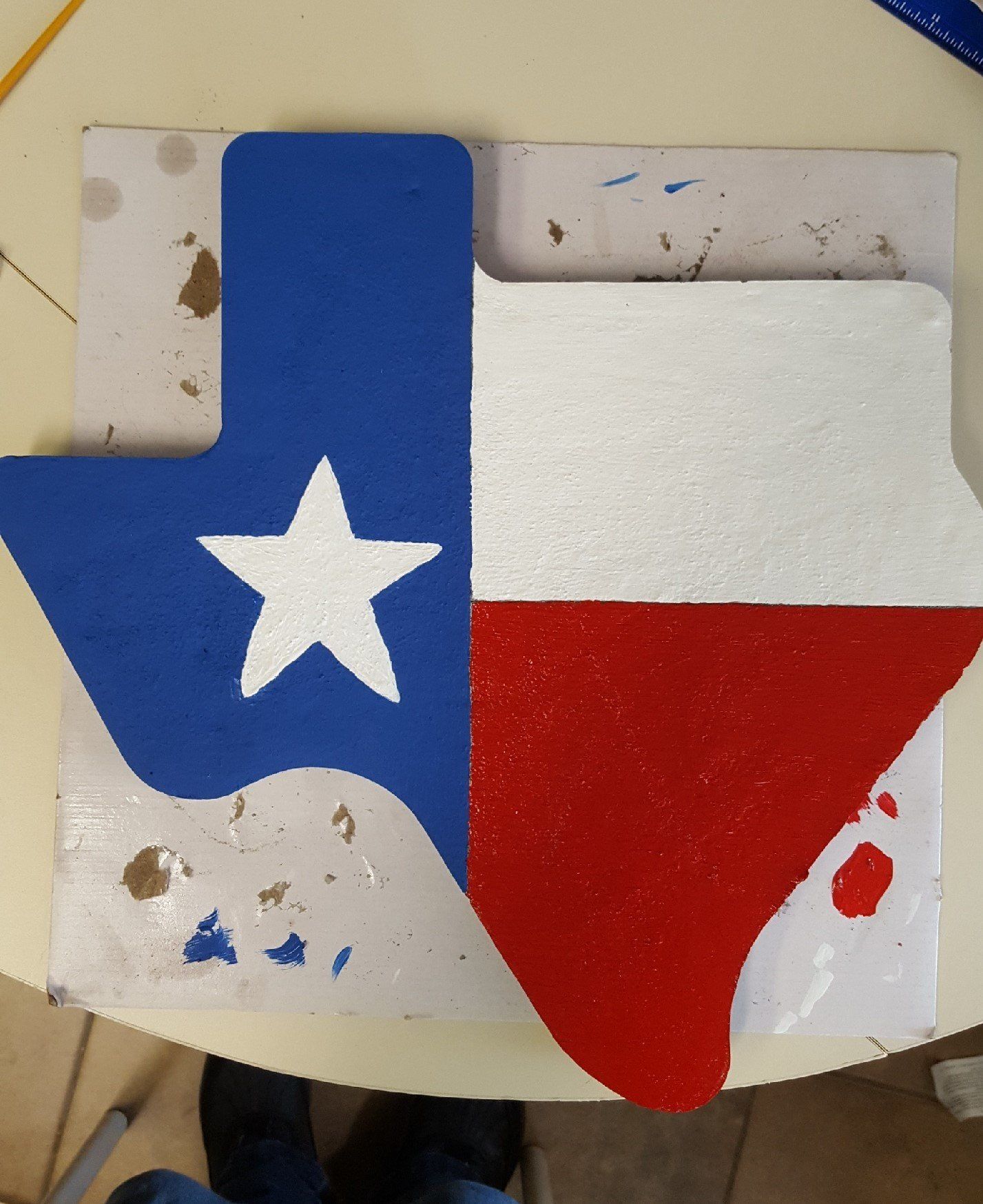 Button12x12 grey cement with acrylic paint of the Texas Flag topped with 2 coats of acrylic clear coat after drying. $25. (1) Available and can reproduce.